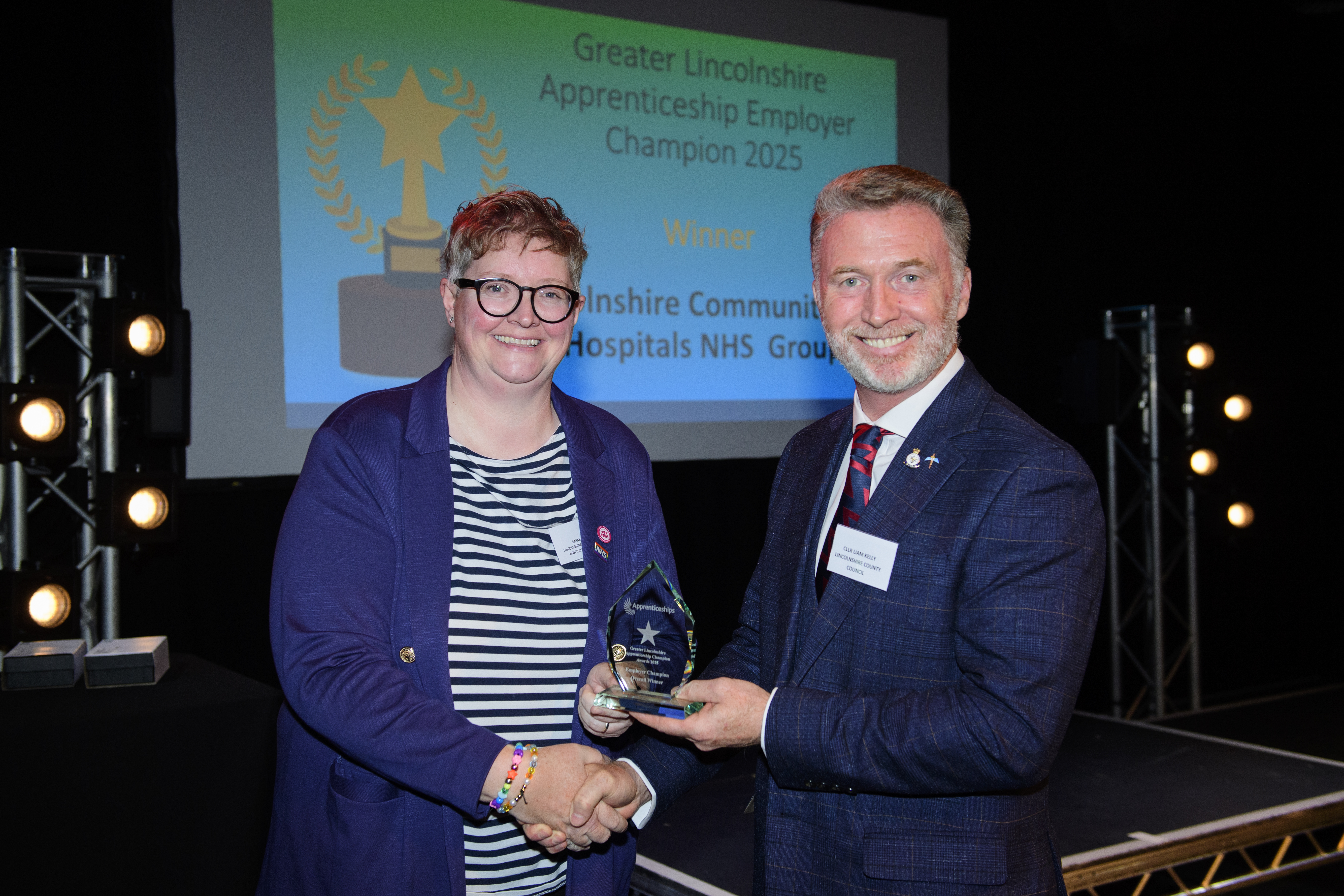 Melanie Papworth took home the top honour after completing a Senior Leader Apprenticeship while raising four children as a single mother. Overcoming imposter syndrome and significant barriers, she is now a passionate advocate for apprenticeships across Greater Lincolnshire.